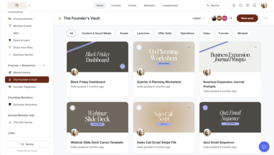 The Vault is essentially a collection of resources to make your work 10x easier, including the Founder Playbooks (a series of SOPs for your business, aka the A-Z step-by-step methods for how to do shit in your business).