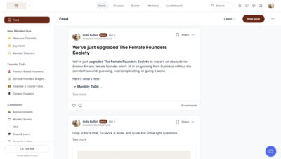 We host the membership on Circle which has everything you need on one platform. You can post to the main feed or dedicated channels; join the group chats; access the resources; watch the trainings.